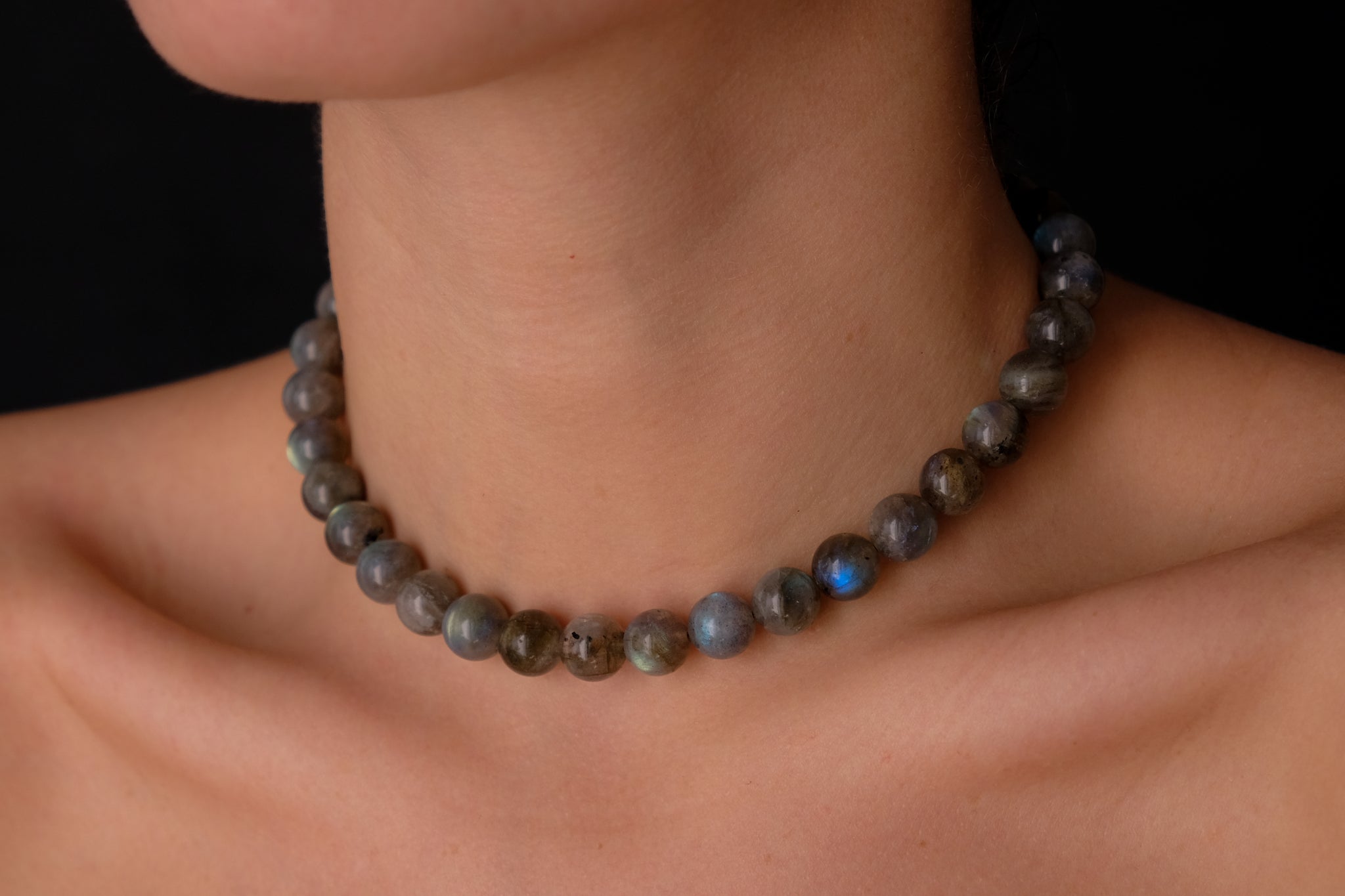 Gargantilla de piedra Labradorita de 10mm de diámetro.