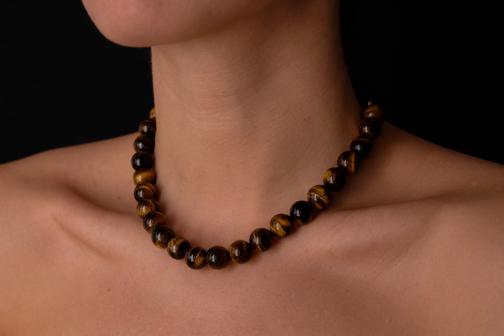 Gargantilla de piedra Ojo de tigre de 12mm de diámetro.
